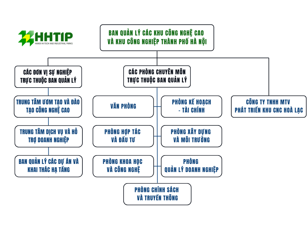 Cơ cấu tổ chức Cơ cấu tổ chức của Ban Quản lý các khu công nghệ cao và khu công nghiệp thành phố Hà Nội