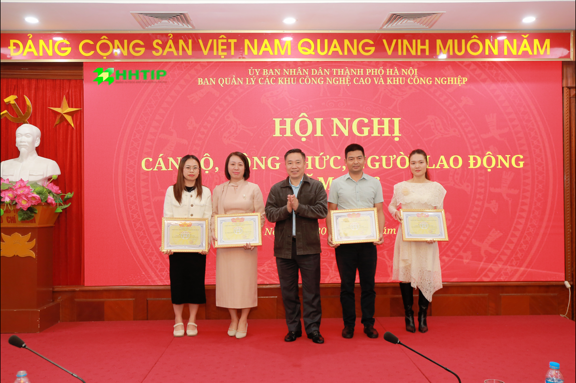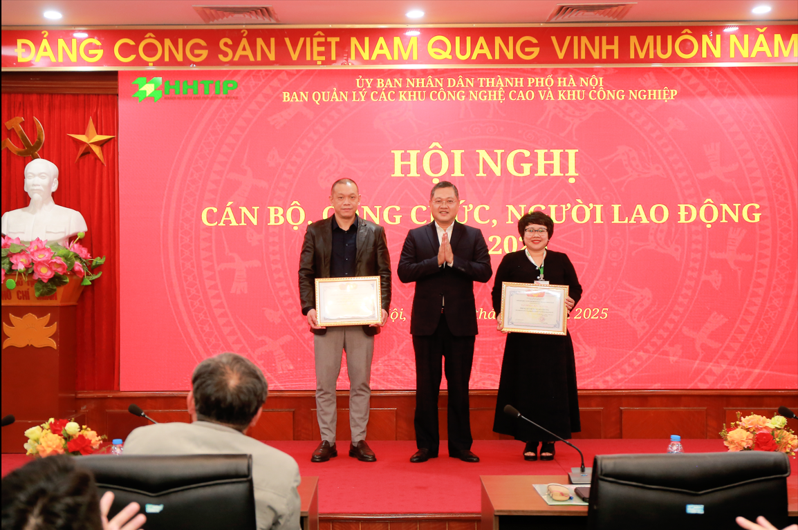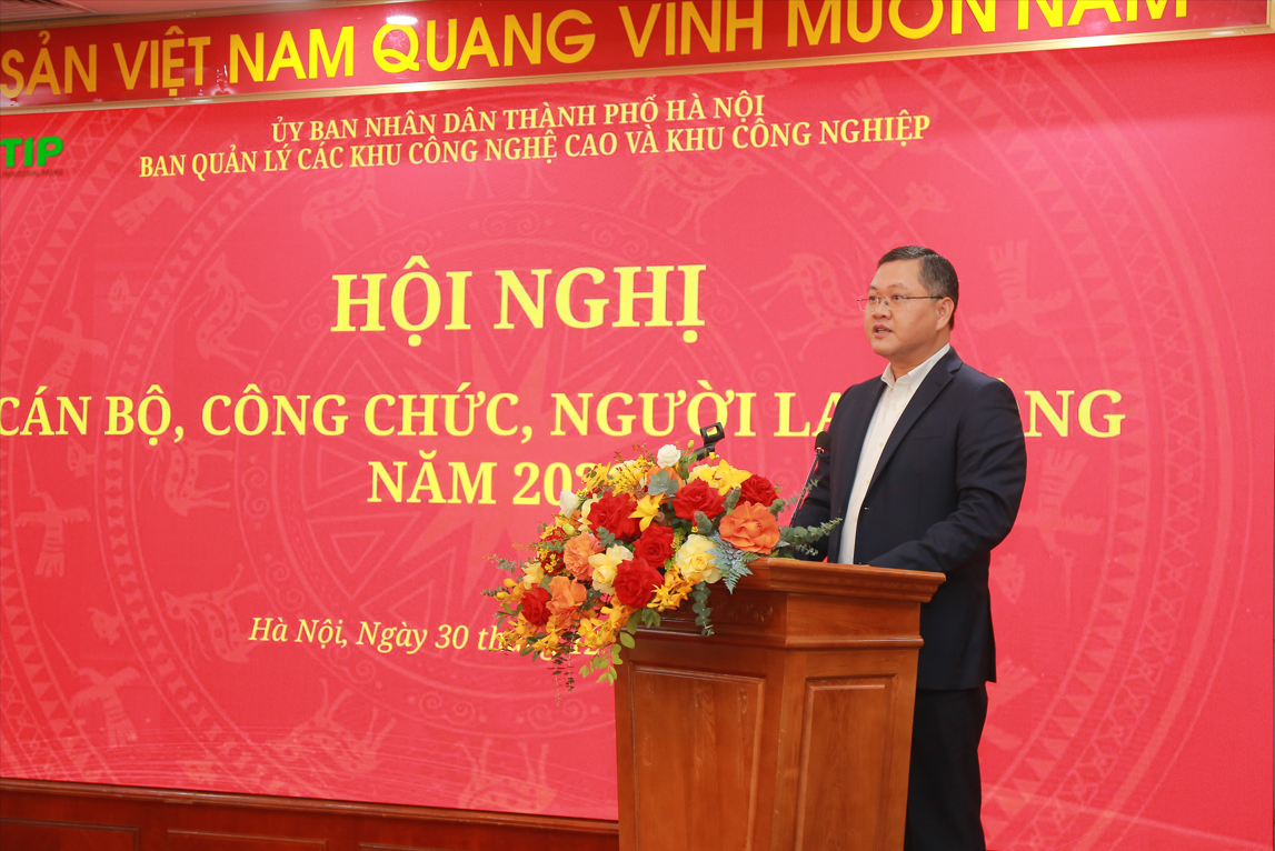 Chiều 30/12/2025, Ban Quản lý các Khu công nghệ cao và Khu công nghiệp TP Hà Nội tổ chức Hội nghị cán bộ, công chức, viên chức và người lao động năm 2026. Hội nghị là dịp nhìn lại kết quả nổi bật của năm 2025, thống nhất phương hướng, chỉ tiêu và giải pháp trọng tâm năm 2026; đồng thời biểu dương, động viên kịp thời các tập thể, cá nhân tiêu biểu, tạo khí thế thi đua, đoàn kết, quyết tâm hoàn thành tốt nhiệm vụ trong năm mới.