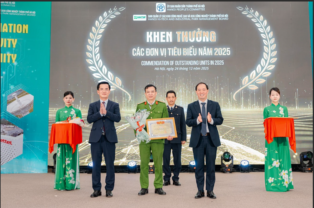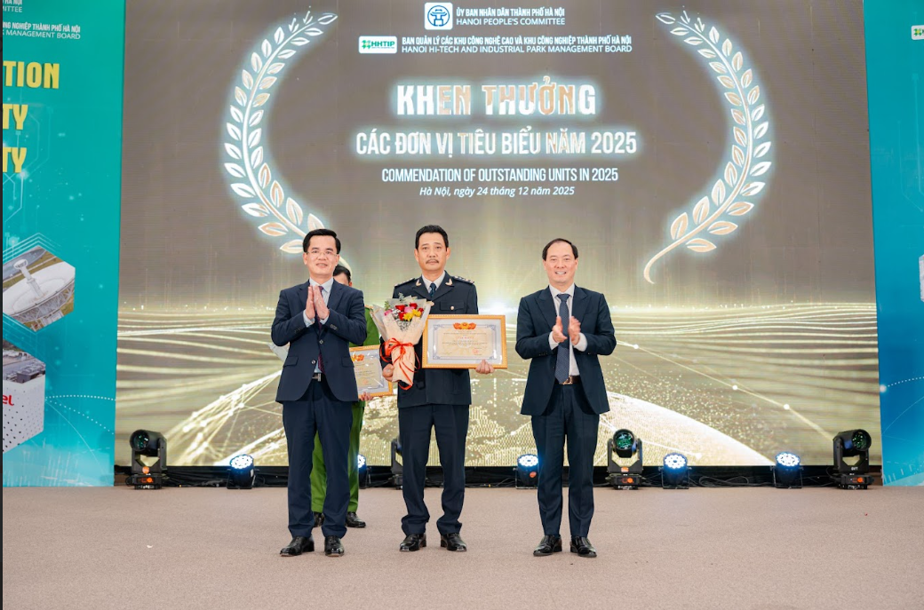Trong khuôn khổ hội nghị, Ban Quản lý đã trao quyết định chấp thuận chủ trương đầu tư và giấy chứng nhận đăng ký đầu tư cho các dự án triển khai tại khu công nghệ cao và các khu công nghiệp trên địa bàn thành phố Hà Nội năm 2025. Đồng thời, nhằm ghi nhận những đóng góp thiết thực cho sự phát triển chung, Ban Quản lý đã tổ chức trao tặng giấy khen cho các doanh nghiệp có thành tích tiêu biểu trong hoạt động sản xuất kinh doanh. Đặc biệt, hội nghị cũng vinh danh các đơn vị có thành tích phối hợp tiêu biểu với Ban Quản lý, tiêu biểu như lực lượng Đồn Công an xã Hòa Lạc và chi cục Hải quan Hòa Lạc, những đơn vị đã luôn đồng hành sát sao trong việc đảm bảo an ninh trật tự cũng như tạo điều kiện thuận lợi nhất cho hoạt động xuất nhập khẩu của các doanh nghiệp tại các khu công nghệ cao và khu công nghiệp của Thủ đô.