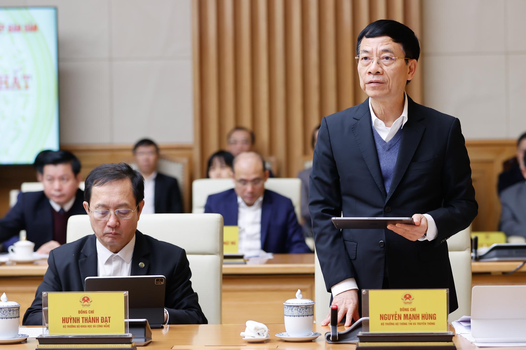Bộ trưởng Bộ TT&TT Nguyễn Mạnh Hùng phát biểu tại Phiên họp - Ảnh: VGP/Nhật Bắc
